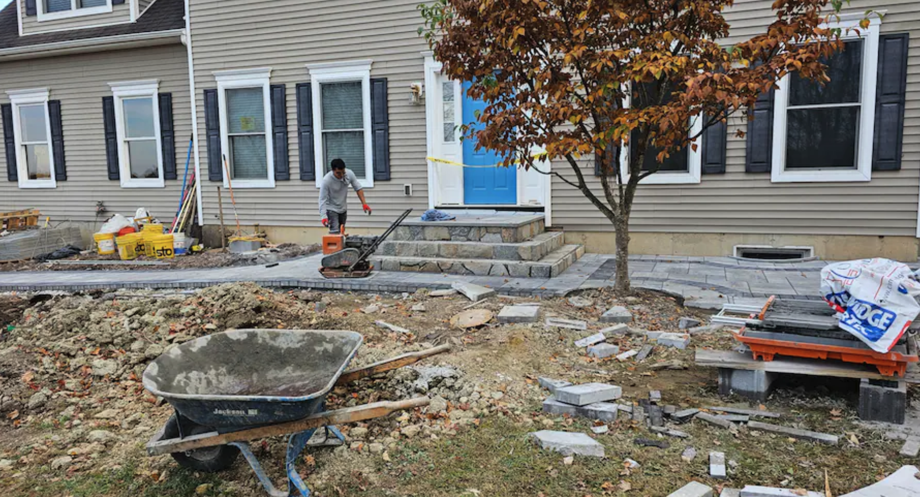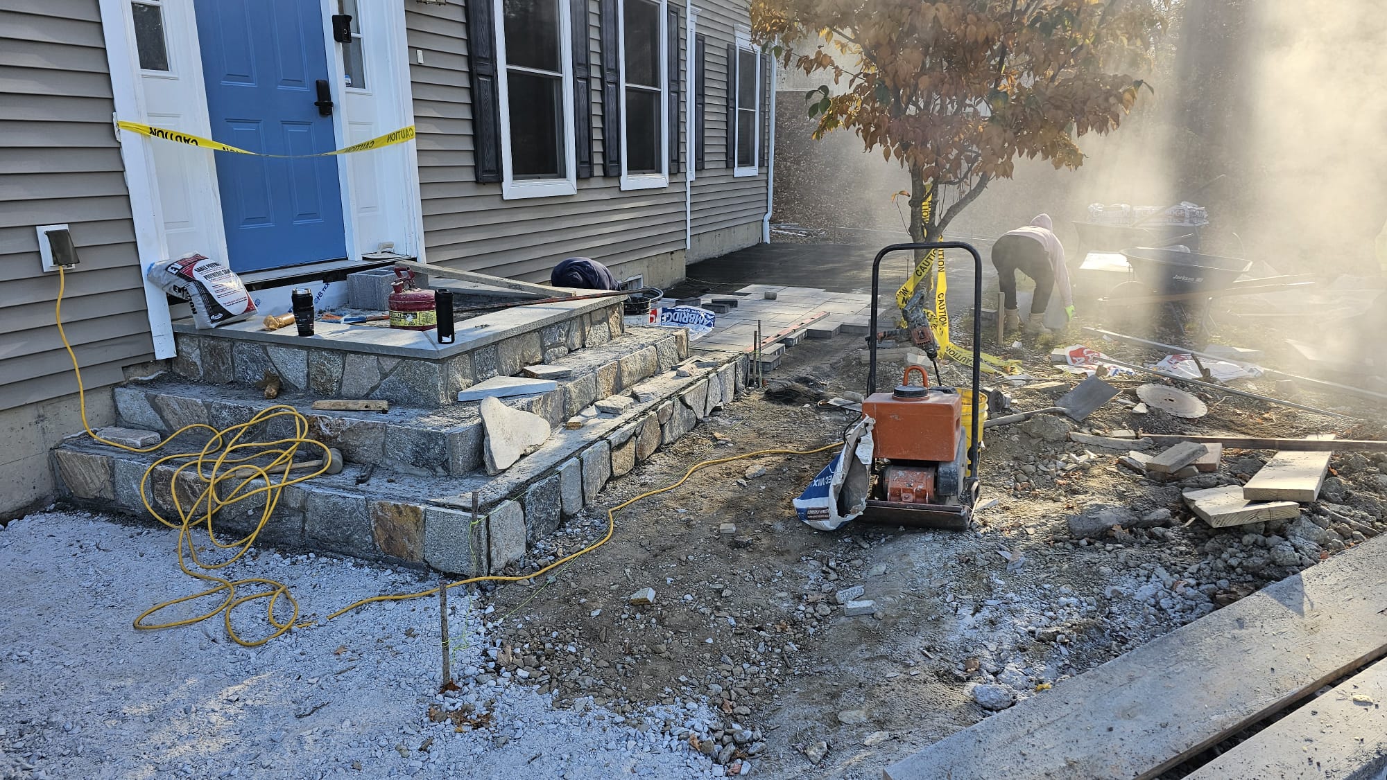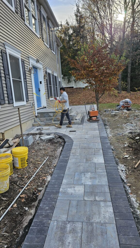 This project was a total patio and walkway redo. The front of this beautiful home required a new walkway fitted with pavers and a stoop installation. We did a full demo and dug down a few ft to do it the right way for the best results!